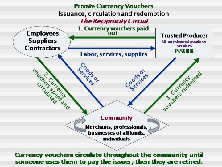 - Such honest mechanisms include private currencies issued by providers of real value, and credit clearing associations that allocate credit on a sound basis to producers of real value, and enable them to exchange value without reliance on bank borrowing or the use of political money.