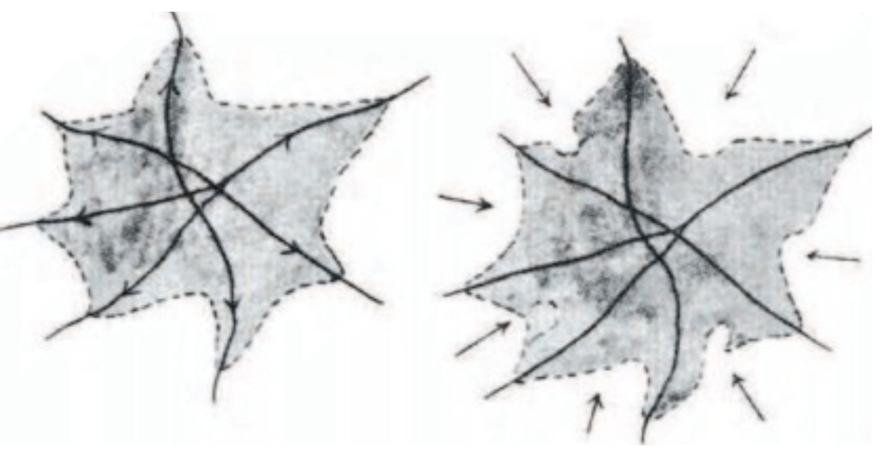1. RURAL URBAN RELATIONS: THIS DIAGRAM, ORIGINALLY LABELED “TOWN>COUNTRY: COUNTRY>TOWN” (GEDDES 1915: 96) REFLECTS PATRICK GEDDES’ CONCEPTION OF THE EXPANSIVE TENDENCY OF CITIES, AND THE RECIPROCAL TENDENCY OF THE COUNTRYSIDE TO PUSH BACK, THESE TWO TENDENCIES RESULTING IN AN ARTICULATED AND ELONGATED EDGE CONDITION OF DIRECTLY ADJACENT, OPPOSITE QUALITIES THAT IMPLY A POSITIVE CONDITION I REFER TO AS “ABRUPT URBANISM”.