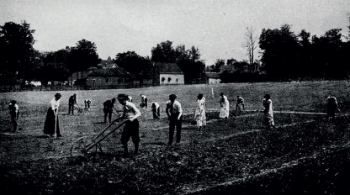 The pedagogical idea of nature study was also effectively advocated for by renowned sociologists and educational reformers John and Evelyn Dewey, who, in their book Schools of To-morrow (1915), effectively demonstrate the practical benefits of climbing trees as “an hour a day spent in the ‘gym’, and show “the gully is a favourite textbook” (DEWEY and DEWEY 1915: 30). “Real gardens for city nature study” are illustrated as a practical pedagogical method (DEWEY and DEWEY 1915: 97), and another poignant example is given, “Using the child’s dramatic instinct to teach history” – illustrated with a photograph taken on the terrace of Wright’s Coonley house, in the garden designed by noted Chicago Park System Superintendent landscape architect Jens Jensen, within the Riverside community designed by Olmsted and Vaux – evidencing the nature study pedagogical idea in landscape and architecture (DEWEY and DEWEY 1915: 128) (ill. 3 and 4).